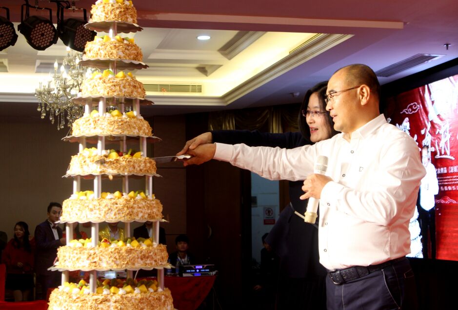 (图为董事长与副总经理喜开蛋糕,寓意2019年的市场份额更上一层楼)