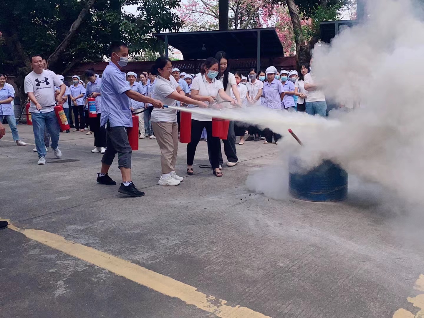 演练后,消防救援大队还为员工详细讲解了常见的火灾种类及灭火器的使用方法、初期火灾的扑救、疏散逃生的自救技巧及注意事项等内容,并且指导大家如何正确使用干粉灭火器、防毒面具、灭火毯、水带等,极大的提高大家应对突发消防事故的能力。