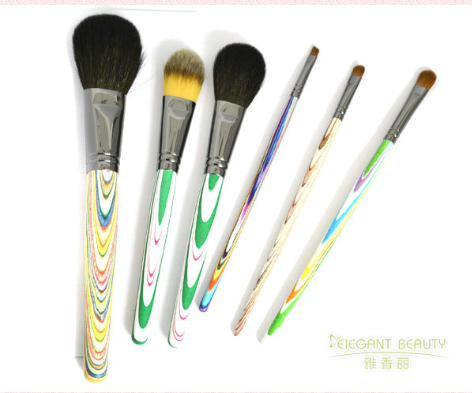 动物毛的刷子的弹性很好,抓粉力强,晕染能力很好,化妆的效果是好的。但它多多少少会有些扎脸,使用起来没有那么亲肤。抓粉力越强晕染力越好的刷子,一定是有点扎脸的。市面上常见的几种动物毛包括马毛、灰鼠毛、松鼠毛、和山羊毛。其中山羊毛是最普遍的一种化妆刷材料,细分成粗光峰,中光峰,细光峰,白尖峰,黄尖峰。根据之前的毛峰原理,细光峰羊毛是最高档的,相对于其他品质,毛发更细更柔,其天然毛发的毛鳞片又使它抓粉力强,是羊毛化妆刷中的极品,价格也较高。马毛是动物毛中抓粉力最强,但是肤感最差的,因为毛质较硬,比较扎脸。灰鼠毛和松鼠毛则柔软,属于高级毛,抓粉力相对马毛和羊毛较弱,但是日常化妆足够。此外还有狍子毛,狐狸毛等高级毛,都是可以用来做化妆刷的,不过这些产品成本较高,卖的价格也比较昂贵,化妆效果与之前提到的几种常见无明显差异。
