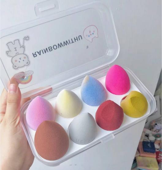 但是美妆蛋的弹力大,所以在使用它上底妆的时候非常舒服,上脸的力度很好把握。它的形状有很多,有的是一些多边的海绵,但也是和美妆蛋比较像的底妆工具。棱角多的就是很贴心的照顾到脸上的细节部位的,这个是非常适合新手的。